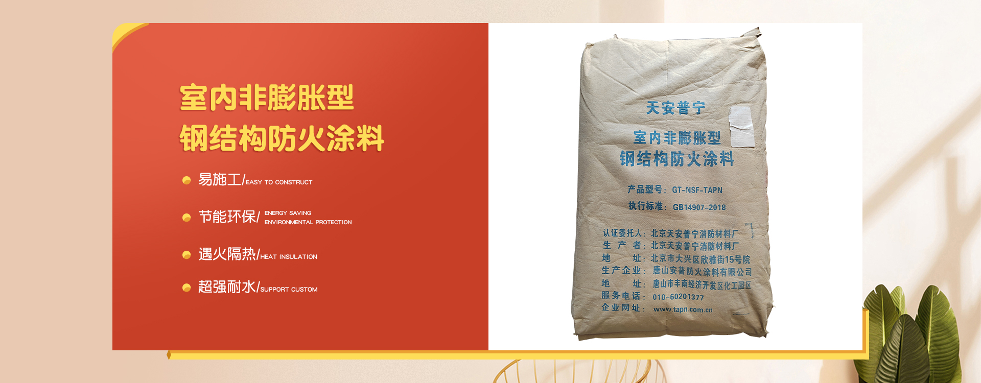 北京天安普寧消防材料廠是一家從事防火涂料二十多年生產(chǎn)企業(yè),企業(yè)集研制開發(fā)、生產(chǎn)銷售及各類防火涂料施工為一體。 企業(yè)員工總數(shù)100人,其中管理人員20人,科研人員10人,銷售50人,其他員工十多人。企業(yè)生產(chǎn)用地面積2000平方米左右,辦公用地面積1000平方米。擁有先進的生產(chǎn)設(shè)備20多臺,年生產(chǎn)量10000余噸。 企業(yè)擁有一支高學歷、資歷深的研發(fā)隊伍,以科學的管理,先進成套的生產(chǎn)流水線設(shè)備及完善的產(chǎn)品質(zhì)量檢驗措施,開發(fā)出TAPN系列防火涂料產(chǎn)品,可以滿足于各類建筑工程中不同基材、不同技術(shù)要求的防火保護,天安普寧系列防火涂料全部經(jīng)過《國家消防及阻燃產(chǎn)品質(zhì)量監(jiān)督檢驗中心》檢驗,理化性能合格,防火性能高,通過《應急管理部消防產(chǎn)品合格評定中心》認證并獲得《消防身份信息標識》。 企業(yè)結(jié)合多年的工程施工實踐經(jīng)驗,培養(yǎng)了一支專業(yè)有素、經(jīng)驗豐富、高質(zhì)量、效率高的防火涂料施工隊伍,可承攬各類高層、多層、大跨度廠房及網(wǎng)架鋼結(jié)構(gòu)防火涂料噴涂施工服務。 企業(yè)始終為用戶全心全意服務,不斷滿足各建設(shè)單位的要求,共同為我國的建筑消防事業(yè)作出更大的貢獻,衷心感謝新老客戶的支持,全體員工熱情歡迎廣大用戶的光臨惠顧。